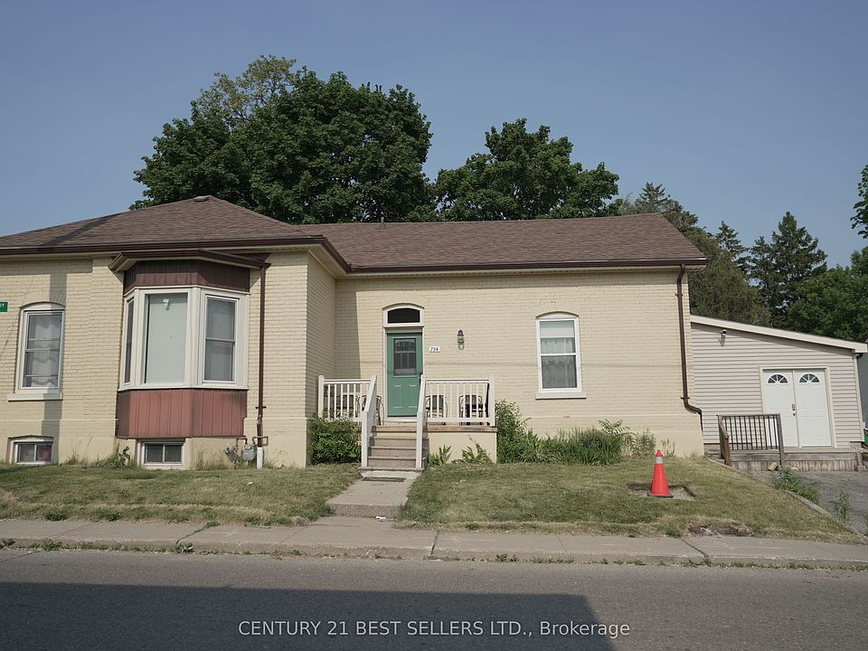 Corner Lot Prime location in the heart of Woodstock. Well-maintained and renovated detached home with 4+2 bedrooms and 5 washrooms. Features two upgraded kitchens with stainless steel appliances, new flooring, and modern finishes. Zoned C4, suitable for a home-based business or workshop. Main floor offers 3 bedrooms, 2 full baths, and a family room with electric fireplace. Second floor has 1 bedroom with 2-pc ensuite. Newly finished basement with separate entrance includes 2 bedrooms, full bath, and kitchen. Multiple entrances for flexible use.