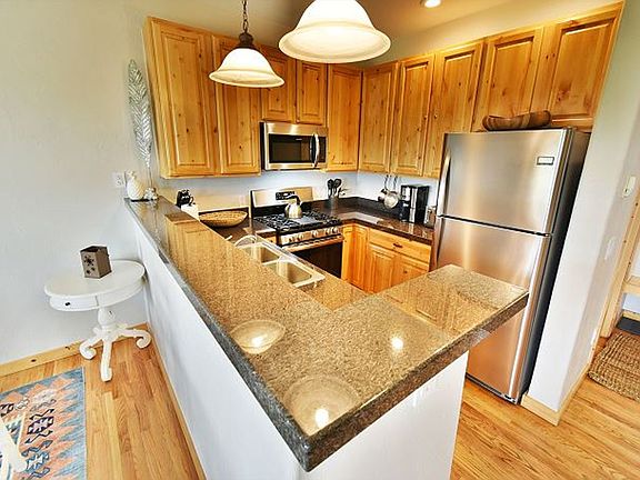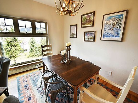 Enjoy this Summer Rental in Dillon available May through October, minimum 1 month stay! Beautiful 3 bedroom, 2.5 bath townhome with garage that is central to it all. Sleeps 8. Mountain and Blue River Valley views. Walk or drive to restaurants, brewery, shops and rentals. A fun and easy place to stay with great sunset views. An easy drive to all mountain resorts and the Silverthorne Outlets. One car heated garage plus one dedicated parking space. Contemporary furnishings. Living room includes gas fireplace, flatscreen and ceiling fan. Fully equipped granite tile kitchen with lots of counter space and stainless appliances. Main floor covered deck has a gas grill and table for 4. Second deck on the ground floor is fenced and has a small play area as well as a gate out to the grounds. Washer and dryer in the unit for convenience. On the Summit County Rec Path that connects all towns and resorts and is plowed in the winter for walking. Bedding ~ King, private bath, flatscreen in master. Work desk with chair on landing. ~ Queen, fold out flatscreen and deck entrance in 2nd bedroom. ~ Double/queen Bunkbed and deck entrance in 3rd bedroom. ~ Queen futon and flatscreen in downstairs den. Central location in Dillon near hiking and biking trails, marina, farmers market, amphitheater, rec path, restaurants, shops and more! No pets/ No smoking. $4,500 per month, price depends on length of lease.
