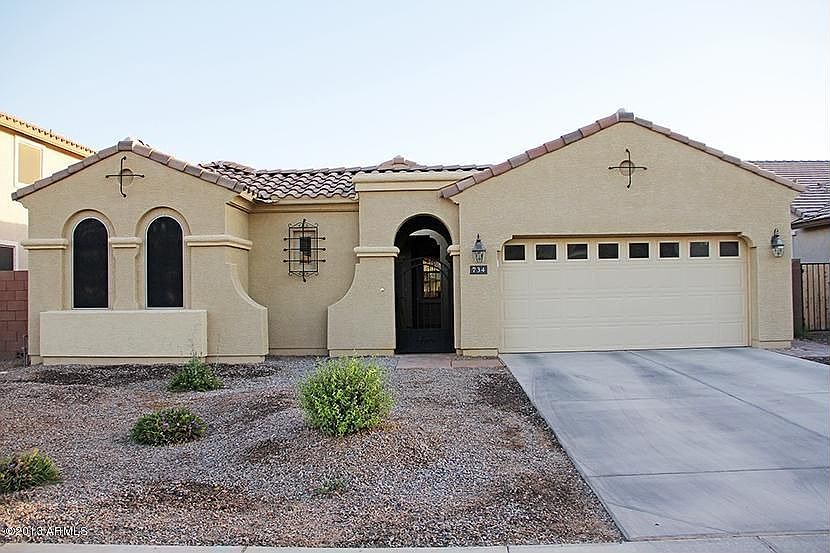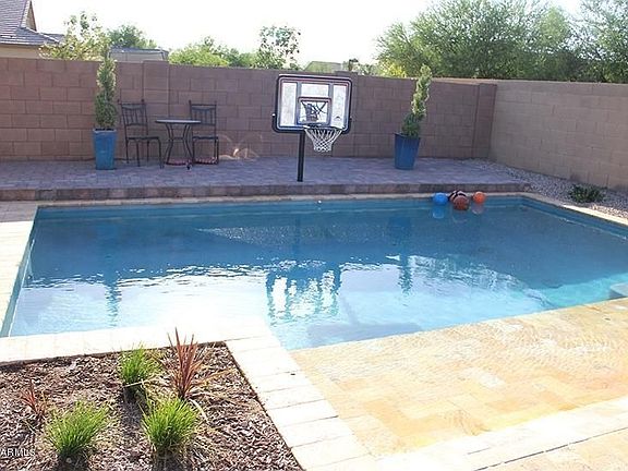 Shows Like A Model Home! Newer Home Traditional Sale! This amazing single story home features a courtyard entry with custom wrought iron gate, 4 bedrooms plus a den, 2.5 baths, great room, 2 car garage, upgraded cabinets with crown molding, stainless steel appliances, granite kitchen countertops, two-tone interior paint, upgraded flooring, and more! Back yard oasis complete with spectacular salt water pebble-tec pool with water feature and beach entry, hardscape fireplace, pavers, and synthetic grass for easy maintenance. this home is a must see and move-in ready!