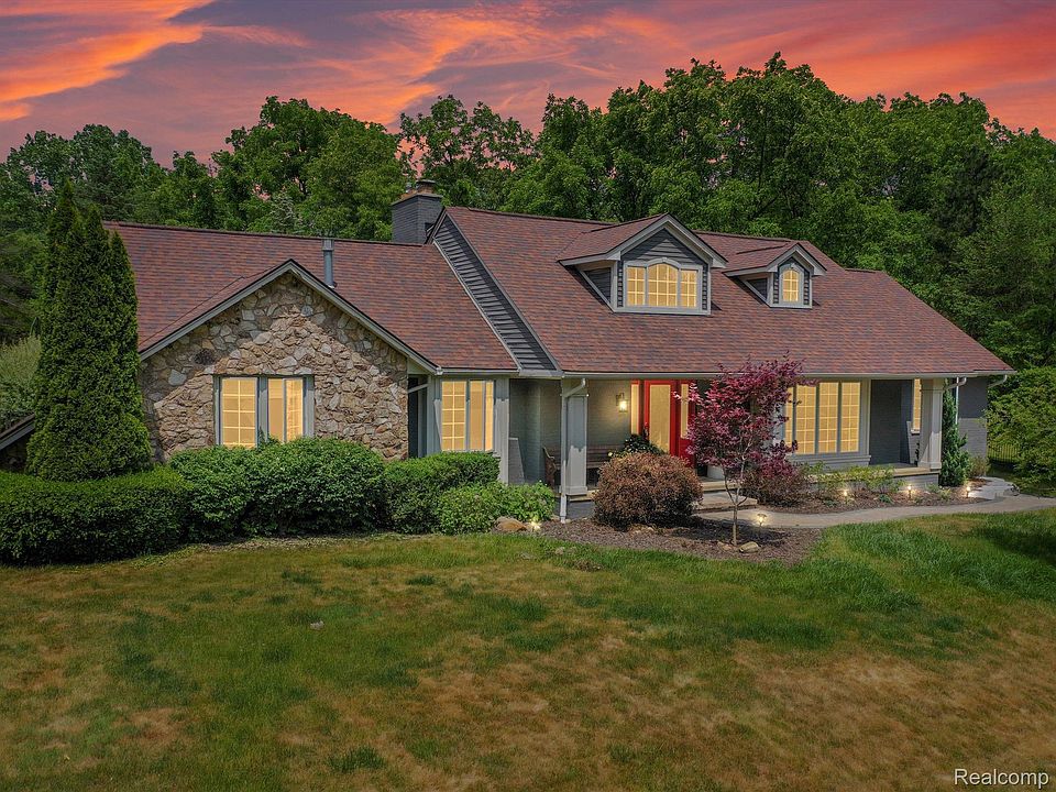 This beautiful Cape Cod home welcomes you with leaded glass double doors, walk into the impressive 2 story entry with a sweeping staircase with iron spindles and beautiful archways, refinished hardwood floor throughout 1st and 2nd floors, large living room with French doors is currently being used as a game room, stately formal dining room with built-in shelves, and butler's pantry, gourmet eat-in kitchen with stainless appliances including gas cooktop, double ovens, side by side refrigerator, built in microwave(2022), dishwasher(2020) Corian countertops, tumbled marble backsplash, large island and tons of counterspace, sliding glass door leads to screened-in porch with reclaimed panel walls and exposed beams for that up north feel, spacious family room has a stacked stone gas fireplace, reclaimed wood mantal, floor to ceiling windows and 2 skylights that flood the room in natural light, built in cabinet and crown moldings throughout, first floor private primary suite has a large walk-in closet, tray ceiling, and a primary bath with jetted tub and separate shower, double sinks, and cathedral ceilings, library/den with built-in shelves and desk is great for home office, additional bedroom on the 1st floor, great for in-laws or au par, powder room has hand painted walls and subway tile, second floor has 2 additional bedrooms and 2 fully renovated bathrooms(2020), plus a bonus room and additional storage space, expansive yard with updated wood deck, storage shed and a chicken coop, new concrete driveway (2020), brick paver walkway and stone stairs (2019), newer Rinnai tankless hot water heater, washing machine(2022) newer Pella casement windows, full roof tear off (2018), freshly painted interior, water softener less than 10 years old with new filtration system, newer furnace and A/C, newer roof, recessed lighting, sprinkler system, fished basement, loads of storage, septic tank cleaned(2023) Great family home!