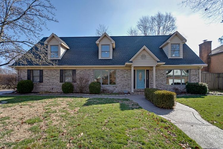 Welcome to Greengate Court, one of Evansville's most sought after cul-de-sac streets! This brick Cape Cod is nothing short of spectacular. When you arrive you will immediately notice the curb appeal, which will only increase as spring unfolds. This true 4-bed, plus a bonus room, home will certainly impress as soon as you step into the lovely two story foyer. Immediately to the right, through charming French doors, is a large office with a wall of bookcases, and to the left a formal dining room. Both of these rooms have large one year old Pella windows, providing an abundance of natural light. Towards the back of the house is the open concept kitchen and living room area complete with eat-in space. The kitchen provides a breakfast bar, a large amount of cabinetry as well as new appliances and flooring. The adjacent living room has a cozy wood-burning fireplace with brick hearth as its focal point. Additionally, the patio doors provide a beautiful view of the fenced-in back yard. Rounding out the main floor is a conveniently located half bath and pantry area that leads to the 4-car attached garage. Head on up the attractive staircase and you'll find a huge amount of space that includes all 4 bedrooms, 3 full baths, and the bonus room! The master suite is generous in size and includes a large walk-in closet and master bath. The remaining bedrooms upstairs are all nicely sized with great closet space. Two additional full baths, a bonus room, and upstairs laundry complete the upstairs. Making this home even more desirable is the beautiful setting and the wonderful neighbors. As the weather improves, you'll love spending time on the patio, enjoying the hot tub (new in 2020) and taking in the lovely view of the lake. Recent updates include: Roof in 2018, (2) HVAC's in 2018, new windows in dining and office, hot tub in 2020, kitchen flooring and appliances in 2021.
