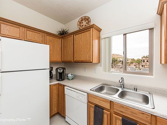 The Subdivision of Enchantment is well named with gorgeous lush landscaping and a beautiful association pool/spa. Gated RV and trailer parking is available. The Mesquite Vistas Sports Club, included in your monthly dues, offers tennis, large pool/spa, exercise room, snack shop, game room and more. Tile in kitchen and both baths. Both bedrooms have ceiling fans, with an additional ceiling fan in the living room. All appliances are included. Never used as a rental.This unit has a single car garage. Views of the Falcon Ridge golf course. Owners lived in this upstairs unit for a brief time.