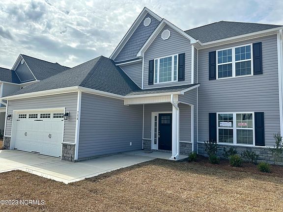 Welcome to the highly desired & popular community of Onslow Bay. Brand new construction built by Onslow County's most trusted & preferred builder, featured in Builder 100/ Top 200 Builders in the country. Onslow Bay is a hot spot, 3 miles to MCB Camp Lejeune's Piney Green gate, 14 miles to New River Air Station & minutes to area schools, shopping & dining. This beautiful neighborhood is sure to impress, complete with a clubhouse area & community pool. Welcome to the Palomar floor plan with approx. 2618 heated square feet. This beauty features 4 bedrooms and 2.5 bathrooms. A covered front porch welcomes you into a grand 2-story foyer magnified by tons of natural light. If you're looking for an open plan, then you will love this one! This gorgeous kitchen features beautifully staggered cabinets, stainless appliances, and an island that opens to a 13 x 13 keeping room with fireplace. Also open to the breakfast room. Truly a home to enjoy... it's time to eat, drink, and relax! The 18 x 16 family room also features a ceiling fan and fireplace. Main level also features a half bath. All bedrooms are located on the second floor. The spacious master bedroom is approx. 17 x 14 with a ceiling fan. The master bath is impressive with a double vanity topped with cultured marble and a custom mirror, separate tub and shower, and a 13 x 6 walk in closet. Bedrooms 2, 3 and 4 all have walk in closets and are prewired for ceiling fans. Laundry room is on the second floor. The covered back porch is a great space to read the morning paper or fire up your grill in the evening. This plan also includes a 2-car garage. Make an appointment today to view this beautiful floor plan! $10,000 USE AS YOU CHOOSE!! NOTE: Floor plan renderings are similar and solely representational. Measurements, elevations, and specs may vary in final construction. All selections have been ordered, limited selections for buyer to choose. Call L/A to verify.