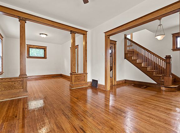 Nicely remodeled home ready for it's new owner. Gleaming refinished woodworking and flooring, totally updated kitchen with new granite counter tops, new cabinets, tile flooring and S/S appliances. Spacious living room and dining room area and gorgeous stairway leading upstairs to 3 bedrooms with new carpet and paint, fully remodeled full bath w/new vanity, tile, tub/shower combo. Very neat and clean home and very nicely redone. These homes move quickly in this price range. Don't delay seeing this home.