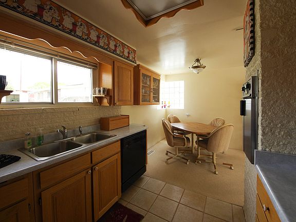 Two bedroom, one bath, living/dining room, kitchen on main floor; Super size master bedroom with lots of closet space; bath has double vanity and lots of cabinet storage; second bedroom/office to fit your lifestyle; living area has large front windows and lots of natural light all day, gas fireplace insert with remote control, dining alcove, tile entry; kitchen features oak cabinets, stainless and black appliances, new cook top, retro wall oven, dishwasher, tile floor; family room and laundry in finished area of basement plus lots of storage in unfinished space; workshop of your dreams includes work benches, wall cabinets, plus a double covered carport for parking two vehicles; mature trees and landscaping with automatic sprinkler system; front porch and large back patio deck; gas furnace and central air conditioning;