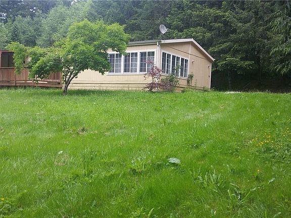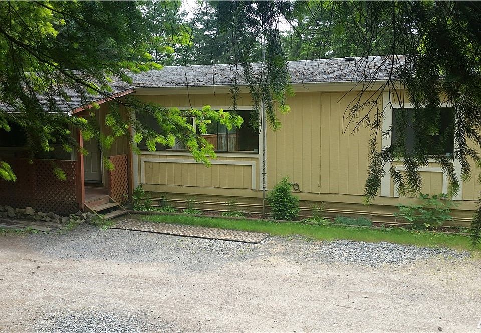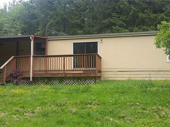 Private 5 acre property only about 20 minutes from town --your own woods with hiking and wildlife to enjoy! Manufactured home with remodel started (new kitchen cabinets and appliances); needs new flooring. Plenty of room for RV parking or outdoor toys. Detached building has carport and is used for storage --not livable, but could be made into separate living quarters in the future. Property is in an area of expensive homes and has room to build. Take a beautiful drive and come see!