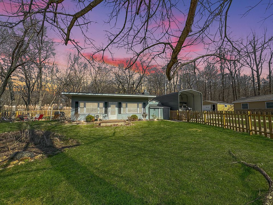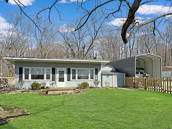Lakehouse dreams do come true! Adorable, turn-key and well-maintained cozy home right across from Portland Mills boat launch. Back the boat out of your driveway and down to the ramp. Enjoy your morning coffee or entertain guests on your 352 sqft of covered porch. Open concept kitchen with beautiful live edge countertop. Cozy fireplace takes center stage in the living room. Two bedrooms with custom window treatments. Fresh paint, two new mini splits, heat pump, ductless A/C, electric water heater, fence all new. Outdoors you'll enjoy sitting by the firepit or hanging out by the bar. Large carport to fit pontoon and mini barn.