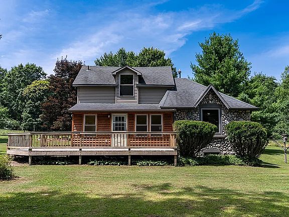 Each bedroom boasts it massive size with walk in closets. The built in book shelves throughout make you feel that you can sit down in any room and get lost in the latest novel. The 20x24 basement is a great addition. The great room has a wonderful built in kitchen table that is practical with its built in storage and also functional for entertaining 8-10 guests for dinner. Once you step outside unto the wood deck you will see the serenity of the backyard and all it has to offer. There is a massive stone firepit and beyond that is a pathway throughout the rest of the 5 acre parcel... which is mowed and carved out so you can stroll without fear of getting lost. On your hike you will encounter turkeys, rabbits, fox, wood