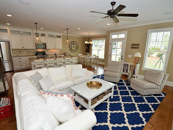 Desirable open concept home in convenient Charleston Place! Beautiful REAL hardwoods, recessed lighting, & crown molding throughout first floor. Open & bright Great Room, featuring gas log fireplace, flows into the Kitchen & Dining. Gorgeous Kitchen offers large eat-at island, granite counters & stainless appliances (including a double oven range). First floor Master features hardwoods, large walk-in closet, & gorgeous en-suite bath accessed by sliding barn door! Master Bath is beautiful, w/ his & hers granite vanities, private water closet, large soaking tub, & step-in glass shower w/tile surround. The first floor also features a convenient powder room & spacious Laundry Room. The second floor offers 4 more Bedrooms, one w/ private Balcony. Bedrooms 2 & 3 share a Jack & Jill Bath while Bedrooms 4 & 5 share a Hall Bath. All Baths feature granite counters & ample storage.