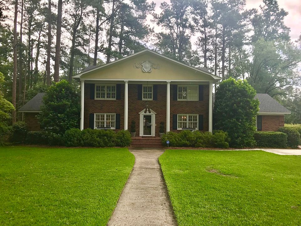 Regal colonial style home with pillared entrance and brick exterior creates a grand entrance into this home nestled in a quiet, scenic neighborhood. Get the look and feel of a historic residence with all the amenities and updates of a modern stunner. The gorgeous hardwood floors, built in shelving, formal dining area, and white washed fireplace add to the stately charm of this home. Enjoy a sizable eat-in kitchen with lots of cabinet and counter space. The stainless steel appliances and extra wine bar area are a cook's dream. The master suite includes a bathroom with double vanity, walk in closet, and shuttered windows. Relax and unwind in your extended living space with exposed wood beams, recessed lighting, and outdoor access. Work from home in your inviting office space with built in cabinetry and attached half bath. Enjoy the outdoors with back porch, play set, and fire pit in your private fenced backyard! $18k Masters rental!!