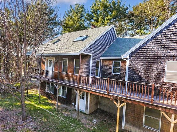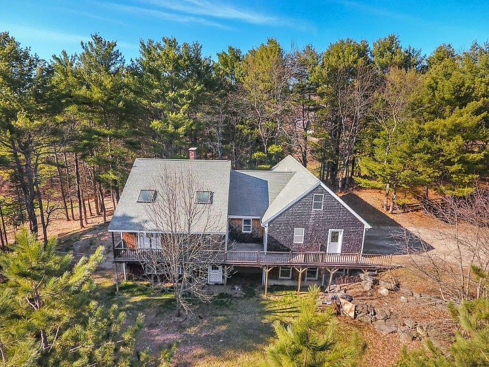 Nestled among pine trees, this tranquil 9.6-acre Windsor sanctuary has several lovely features w/its own private pond & 60 X 43 1800's barn w/commercial potential. Set back from the road, the 3-bedroom contemporary has been lovingly maintained & updated. Filled w/natural light from its four skylights and multiple over-sized windows, the home has an open concept design w/ a nice flow connecting the kitchen, living & dining rooms. High ceilings and gorgeous birdseye maple & walnut floors in the dining room & Jatoba Brazilian Cherry floors in the living room accent the décor. Cherry cabinets, new counters, & a cook stove add character to the kitchen. The cook stove, which heats the entire first floor, is complemented by radiant heat throughout. A convenient laundry room adjoining the kitchen, features a large pantry, slate sink half bath. The 1st floor Master (w/double closets) has been freshly painted and newly carpeted. The master bath offers more storage w/a walk-in closet, and its jacuzzi provides a place to relax. Two bedrooms, an expansive family room, full bath, and workshop, are located in the lower level, which is also filled with natural light. Outside, an expansive deck wraps around one side of the house, offering views of the woods & pond (with its own dock and swimming area). A large fenced-in area provides a secure place for pets or children. The two-car attached garage, pole barn, shed and post & beam barn (with a workshop and commercial shop) ensure plenty of storage space. Located between Waterville & Augusta, this private home is an easy commute to nearby businesses, restaurants & recreation areas.