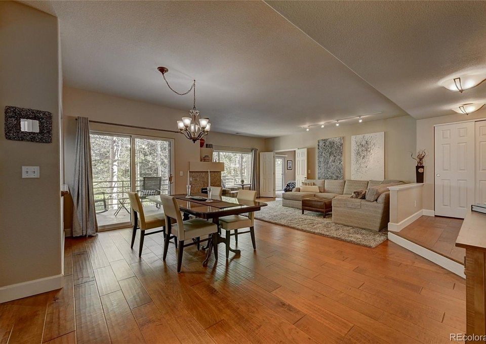 Come and enjoy the sound of the water splashing over the rocks as you sip your morning coffee on either of your two decks overlooking one of the ponds and the creek. Beautifully cared for and updated single level unit with wide plank hardwood floors throughout the main living area and kitchen. Gleaming updated kitchen with SS appliances and granite counters. Large master suite with its own deck and en suite 5-piece bath and walk in closet. Amazing amount of light all year around with an almost entire wall of windows greeting you as you come in the front door. Enjoy watching the elk and deer as they are very frequent visitors. With only 30 minutes to downtown Denver and 45 minutes to the nearest ski resort, this is a truly unique location. When you factor in the quiet and the maintenance-free lifestyle, Chimney Creek is a great place to call home. Or if you are just looking for a second home, it's a great lock and leave community. With main level living this home won't last long, so come out soon to take a look!