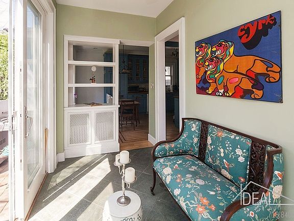 This gorgeous mansion-like home on Rugby Road is located in Ditmas Park, an area of Brooklyn filled with large colorful single family homes, green lawns, trees and gardens. The historic home has an amazing layout with great natural light in every room. The porch is a great place to relax and watch the world go by. On either side of the front door there are original stained glass windows. The front coat closet even has a stained glass window. On the first floor there is a large entry room and living room, both with fireplaces. The dining room is large enough to entertain in style and also has a large fireplace. Beyond it is a windowed sun room with access to the deck and private back yard. The kitchen is the largest room on the first floor with plenty of butcher block counter space and all the amenities. Next to the staircase is a half bath. The second floor landing of the staircase has more beautiful stained glass windows. The second floor has four bedrooms, two with large bay windows and a full bath. One of those bedrooms has a pass-through vanity that leads to a bedroom with a screened porch. Another four bedrooms with closets galore and a full bath complete the third floor. The huge high-ceiling basement offers plenty of storage and also has a finished laundry room. A private driveway completes the picture of this beautiful Ditmas Park residence, with its authentic period charm and modern-day enhancements. RSVP today for the upcoming open house, as this home is already generating substantial interest. Exclusively represented by Melissa Dehncke McGill 917.365.5947, Ideal Properties Group