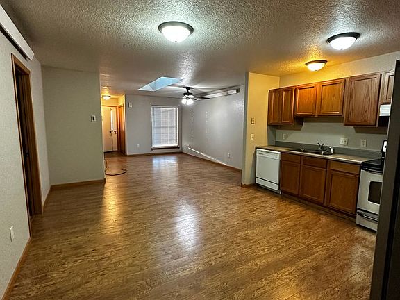 Discover this beautifully maintained townhome in Spearfish, offering an affordable opportunity for comfortable living. The property boasts several enticing features: Step inside to an inviting open layout. The tasteful laminate flooring throughout the living area not only adds style but also ensures easy maintenance. A brand new skylight floods the interior with natural light, creating a warm and welcoming atmosphere. This townhome includes two bedrooms, perfect for accommodating your personal space needs or hosting guests. A generously sized shared bathroom can be accessed conveniently from both the living area and the primary suite, enhancing accessibility and functionality. The attached finished garage offers secure parking and additional storage, making your daily life more convenient. If you're seeking the ease and convenience of low-maintenance living, this townhome is the answer. It's been meticulously cared for and designed with your comfort in mind. Take this opportunity to experience comfortable, hassle-free living at an affordable price. Don't miss out on this charming Spearfish townhome.