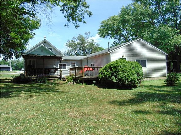 Well maintained turn of the century home. 3 BR 1.5 BA. Updated kitchen in 2021. Large living room, newer carpet in upstairs bedroom, new water heater in 2018. Large oversized 4 car attached garage. Enjoy sitting and relaxing on the adorable front porch. Enjoy nature from the back deck.
