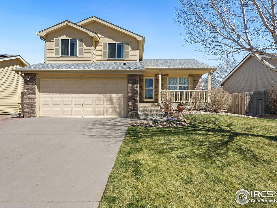 Welcome to your new home! This beautiful home has it all, located in Milliken's most sought after neighborhood, Settlers Village. This 5 bed, 3.5 bath home with fully finished basement is turn-key and ready for proud new owners. Inside you will find a bright and airy floorplan, with the main level living room leading into the kitchen and dining area. Kitchen features ample cabinet storage, plenty of counter space, updated newer appliances and custom tile backsplash. Hardwood floors throughout the main level and lower level of the home! Beautiful sunroom addition has an abundance of windows and natural light, adding valuable square footage and a very comfortable space for relaxing. On the upper level you will find three bedrooms, one of which being the spacious primary bedroom with a walk-in closet and full bath. The professionally finished basement features two additional bedrooms, full bathroom, and new carpet. Additional home features include vaulted ceilings, newer paint, updated lighting fixtures, freshly cleaned carpets and more! Huge backyard with lush and mature landscaping, including terrace gardens, fruit trees and flagstone walkways. Conveniently located across the street from Milliken's K-8 Knowledge Quest Academy and close to other schools. Easy access to shopping and ample amenities. Central A/C, New hot water heater, no metro tax!