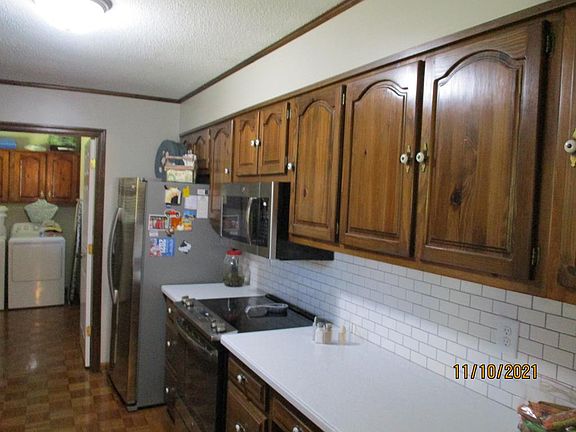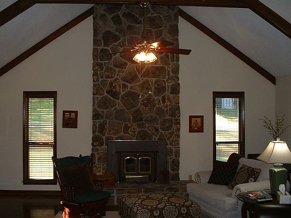 Beautiful ranch style with hardwood flooring in the living room, cathedral ceiling with wood beams and a wood burning fireplace. Kitchen has stainless steel appliances and solid surface countertops This home features a split bedroom plan. Looking out from the back deck you'll see a lake that has a small dock.