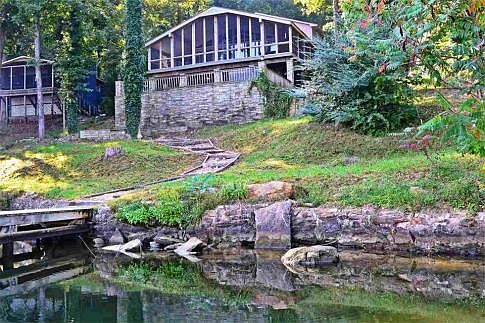 MAIN CHANNEL WATERFRONT HOME OFFERS 100 FT. SHORELINE, 2 OPEN BOAT SLIPS, SUN DECK, 8-10ft WATER, 5BR/4 BA, 4000+/- SF, GREAT ROOM W/ VAULTED TONGUE & GROOVE CEILING, FIREPLACE, KITCHEN W/CUSTOM CABINETRY & STAINLESS STEEL APPLIANCES, STUDY, HUGE REC ROOM W/FIREPLACE, BONUS ROOM, HARDWOOD FLOORS, SECURITY SYSTEM, LAKESIDE FLAGSTONE PATIO, LAKESIDE SCREENED PORCH, BEAUTIFUL VIEWS OF LAKE & MOUNTAINS.