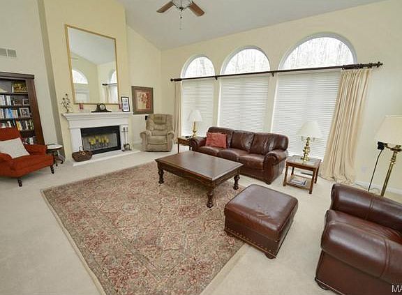 Welcome to a beautiful 1.5 story home in the Legends Community. This 4 bedroom/3.5 bath home has a spacious open floor plan with a soaring two-story great room, built in shelving, wood burning fireplace and great view of the woods. In the kitchen you will find upgraded maple cabinets, vaulted ceilings, pantry, center island and sunny breakfast room. Main floor master boasts His & Hers walk-in closets and Luxury bath w/ double sinks, tub and separate shower. Upstairs offers 3 spacious bedrooms, 2 share Jack n Jill Bath, and another full bathroom. Main floor laundry room complete with utility sink and cabinetry leads to oversize 3-car garage. Deep pour basement with rough in bath and extra finished space - great for an office or sleeping area. Located in AAA Rockwood School District with easy access to Hwys. 109 & 44. Subdivision Pool!