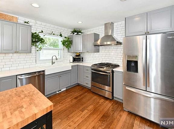 Fully renovated, impeccable modern Maywood gem, on large property with great backyard! Stunning new kitchen w/quartz counters & stainless appliances, new flooring, new electric, new plumbing, brand new half bath! Gorgeous 1st flr Master Suite w/his & hers closets & spa-like master bathrm w/oversized shower, & double sink carerra marble vanity! Also a terrific family rm w/vaulted ceiling & attractive exposed beams & integrated speakers! 3 BRs on 2nd flr - 2 large sizes, the 4th BR is smaller & could be a great home office too! The finished basement is great for a Rec Rm/Play Rm/Den/Gym etc !! The second side has laundry & storage. Then you have the oversized backyard w/deck for years of great outdoor gatherings! All this & Central AC (1st Flr), 200 amp electric, & easy walking distance to schools, parks, NYC bus, Bergen Town Center w/Whole Foods, Target & more, & Maywoods great downtown shopping! Move in ready!! Book your showing slot today! Dont wait! Showing times will go fast!