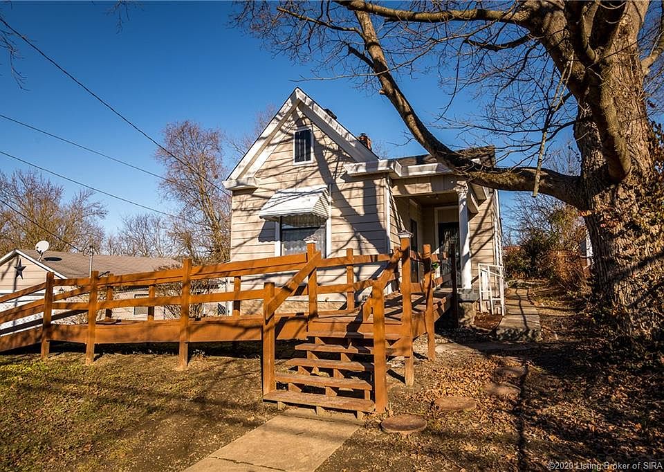 Check out this conveniently located, completely RENOVATED beautiful bungalow in New Albany. This 2 bedroom - 1 bathroom home features tall ceilings, NEW flooring, NEW lighting, NEW kitchen appliances, cabinets, all NEW GRANITE counters. The entire house inside and outside has been freshly painted. You will fall in love with the large double lot, where you will have plenty of room for gardening or entertaining. The oversized 2-car garage is perfect for providing off-street parking or for working on your favorite hobbies. There is another supersized shed with electricity that is perfect for a craft room and another regular size shed for even more storage options. The house features some new windows and a covered front porch. There is soo much to love. You won't want to miss this little gem. Sq ft & rm sz approx.