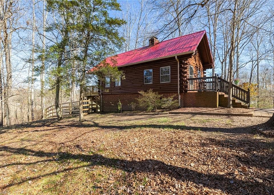 Don't miss out on this BEAUTIFUL RUSTIC LOG CABIN! This home is the epitome of what a rural retreat should be with its rough cut log walls and beautiful vaulted ceilings with exposed log beams in the living room - you're sure to feel like you're on a mountain retreat everyday! This home is conveniently located just minutes to local vineyards and lake Thoma-Lex or take a short drive to High Rock Lake. This home has great potential for a rental investment or to just call home. Home would make a great Air BnB close to the lake - what a great investment! Metal roof installed 2023, Deck replaced and fence installed 2022. Exterior logs recently re-stained and fresh paint in the lower level bedrooms and bathroom. This home will not disappoint!