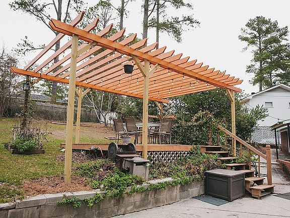 3 bedroom with 2 full baths. Kitchen and baths are tiled. Hardwoods throughout the rest of the living areas. Recently built Pergola in backyard making the area great for entertaining. Pergola is fully lined with beautiful outdoor lighting. Fully fenced backyard. The home has large windows adding a lot of natural lighting to the charming ranch. Huge finished laundry room off the kitchen. Two car carport and outdoor shed. A lovely ranch with a fantastic yard. You will enjoy showing this home.