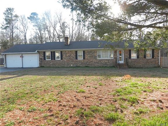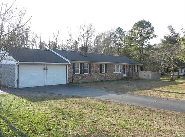 Spacious brick rancher on over 1.3 acres conveniently located near major interstates, airport, and 1/2 between Richmond and Williamsburg. Wood floors in livingroom and bedrooms, family room with newer carpet and brick fireplace. Sunroom rear of home. Attached 1 car garage rear load, and attached 2 car carport with garage doors. Lots of room for the handyman or handywoman, that wants additional space for crafting or shop. Water heater new 2017. Rear privacy fencing.