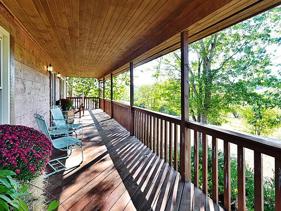 Clean & cozy log cabin home just 10 minutes from town w/ valley views of woods & creek! Newer updates to kitchen & master bth; hardwood floors; open floor plan w/ vaulted tongue/groove ceilings; 1st floor laundry; part finished LL; 42 ft cvrd porch; new deck & fence; floor-to-ceiling stacked stone frpl; walk-in closets in each bdrm; all stainless appliances stay! Too good to miss!