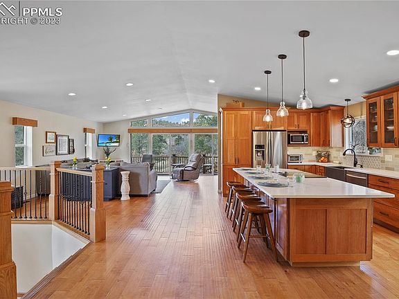 This private retreat is waiting to impress! Elevate your lifestyle and experience the joy of living in the coveted Rockrimmon community in this one-of-a-kind fully updated home. Set on 0.43 acres, discover this impressive 3,089 square-foot home surrounded by mature pine trees and wildlife galore. Step inside to be greeted by a bright and open-concept space featuring a wall of windows that will take your breath away! The open-concept layout flows effortlessly from the entry into the large kitchen, dining area (with a fireplace), living room, and office nook all featuring engineered hardwood flooring and vaulted ceilings. The custom kitchen features cherry cabinets, quartz counters, stainless steel appliances, a subway tile backsplash, and a HUGE 4-seat quartz island. Large sliding glass doors off the kitchen are only one way to access the amazing trex wrap-around deck. Imagine relaxing here in the morning with a warm cup of coffee while watching deer and other wildlife wander through your yard. Professionally installed AstroTurf can be found in the fully fenced-in portion of the backyard, with the remaining portion of the lot left in its natural beauty. Back inside, tucked away on the main level is the spacious owner's retreat with an updated en-suite bathroom with granite counters and a walk-in closet. In addition to the owner's retreat, the upper level offers two additional bedrooms and a remodeled full bathroom. An open railed staircase leads to the lower level which features a large family room with a fireplace, two bedrooms, a remodeled 3/4 bathroom, and a laundry room. Other notable features include new carpets throughout, roof replaced in 2017, updated electric panel, tankless water heater, a new wraparound deck in 2011, and stucco in 2020. Even more, this home is located only minutes from shopping, dining, and hiking –such as Ute Valley trailhead and Blodgett Peak trailhead to name a few. This wonderful home truly confirms that Westside is the best side!