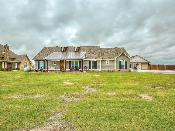 This home is truly AMAZING! There isn't a feature that will go unnoticed. The home Sets on 1 acre with a 26X34 Shop that has a 240 sqft heated and cooled room that can be used as an office or guest room. You will be WOWED the minute you walk-in, There is a lovely dining space, living room and open Kitchen concept that greets you instantly. The large space is accented by the tall ceilings with wood beams. The beautiful built-ins around the grand fireplace are sure to stun. The Kitchen is a show stopper, Cabinets to the ceiling, large island, beautiful backsplash and open shelving. The Master is large with its own fireplace, a nice closet and a BEAUTIFUL bathroom that has a custom vanity and high end finishes. The home has 1 large bedroom upstairs along with a flex space. It's energy efficient with a high efficiency propane furnace, low E Windows, foam insulation throughout, even the garage walls are insulated. The Shingles are grade 4 High impact shingles. High end finishes throughout!