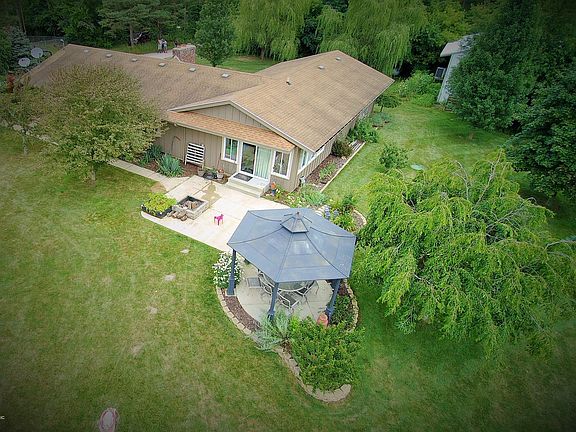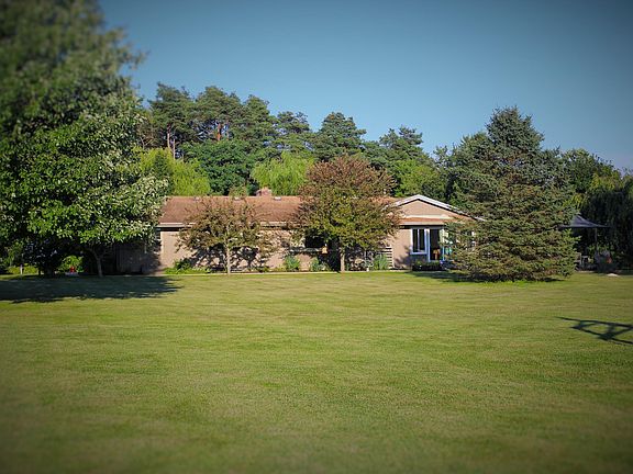 Just Listed! 3 bedroom, 3 bath ranch on 6 acres! Home is ready to move in with many updates such as: updated baths; freshly painted inside and out; Pella windows with in the glass blinds; security and surveillance system; tile floors; water heater; solid wood doors; updated trim and flooring. Also includes: large sun room; Bilco doors; main floor laundry with wash tub; central air; partially finished basement with possible 4th bedroom; all appliances; Kinetico Water softner and more! Outside features: 41 x 41 2 story pole barn with 200 amp service,water, heat and air conditioning. (set up for possible side income). Home has batten board siding; large concrete approach; full court basket ball area; concrete patio with lighted gazebo and custom fire pit; 2 car attached garage; freshly