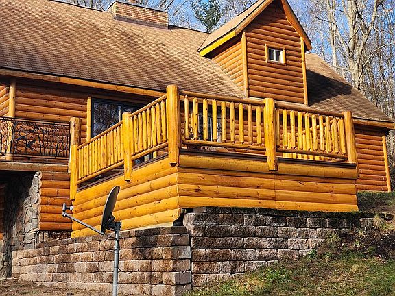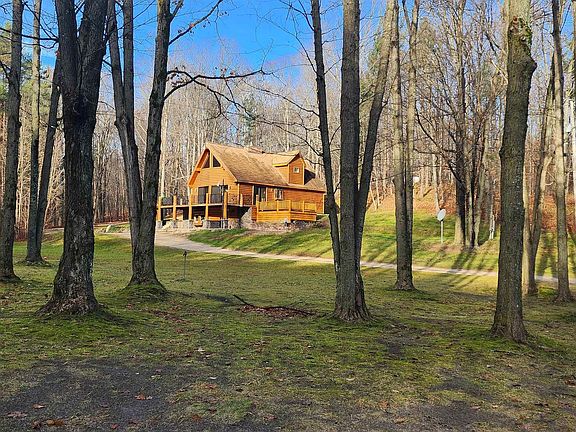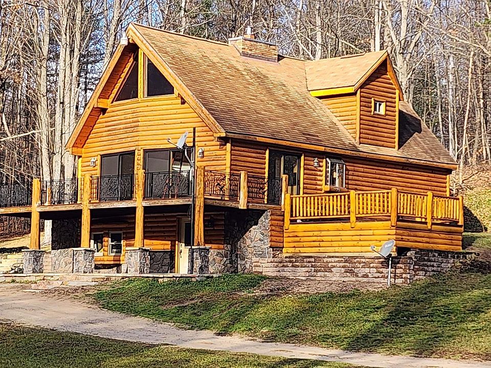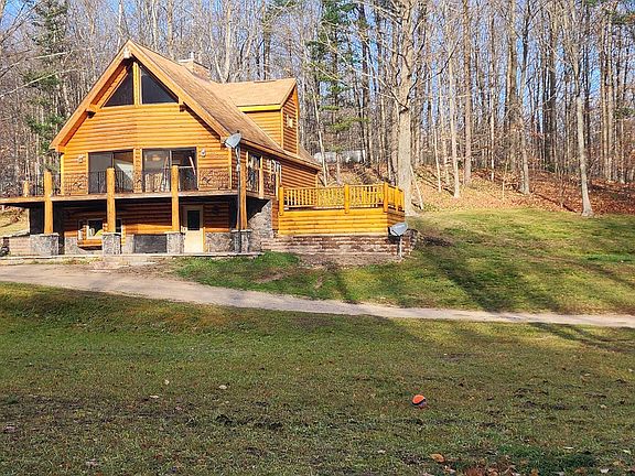 Experience the charm of this stunning log-sided chalet, offering 2,300 sq. ft. of living space with 3 bedrooms and 3 baths, nestled in a private, serene setting. This home combines rustic elegance with modern updates, creating a unique haven surrounded by nature. Main Level: Open floor plan with custom hickory flooring, recently resurfaced. Updated kitchen featuring hickory cabinets, a ceramic tile floor, a custom island bar, and stainless steel appliances (refrigerator only 1 year old, gas convection oven). Dining and living areas boast new Anderson sliders, trapezoid windows, and a cozy box window over the sink for plants or herbs. Two main-floor bedrooms with resurfaced oak hardwood floors and private sliders. A remodeled bathroom with a convenient laundry chute. Loft Level: An inviting retreat with new vinyl plank flooring, a lighted ceiling fan, custom wrought iron panels, and a luxurious bathroom with a jetted tub. Walkout Basement: Spacious family room with potential for a fourth bedroom featuring a window box seat. Updated 1/2 bath and new vinyl plank flooring throughout. Outdoor Living: A 626 sq. ft. wrap-around deck and a 165 sq. ft. side deck, ideal for entertaining. A 47x10 custom Chilton patio with Chilton rock steps. Over 8000 sq. ft. of storage space with outbuildings, including: 40x60 pole barn with 12 ft. insulated doors, epoxy floors, 200 amp service, and heated work areas. 60x40 horse/cattle barn with concrete floors, heated waterer, tack room, and loft. 36x24 hip-roof barn with loft and concrete floors. Turkey pen, chicken coop with electricity, and predator-proof run. Property Highlights: Scenic trails meandering through mature hardwoods, Red and Austrian pines, apple trees, and Stanley plum trees. Wildlife enthusiasts will love the sounds of warblers, whippoorwills, and owls in the evenings. Nestled near 10,000 acres of state land, with easy access to Hopkins Creek and the Manistee River. Realtor owned.