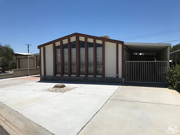 Live the Desert Lifestyle to the fullest at one of the most popular 55+ mobile country club communities in the desert area. This home features beautiful wood laminate floors, wainscoting and dramatic, soaring ceilings. Spacious and well maintained, with a turnkey kitchen and separate laundry room with washer and dryer and lots of welcome cabinet space. Master suite with en suite features both a stall shower and tub. Spacious 2nd bedroom. Newer Heat/A/C, plus a swamp cooler. Spacious back patio with storage shed AND lots of parking space with 2 driveways. Bring your golf clubs and enjoy the community course (two deeded owners receive unlimited golf on 2 courses, included in the monthly fee of only $166.72). Plus, tennis, shuffleboard, pickleball, social events and activities, a Clubhouse, with restaurant and bar. It's all here, so come and make new friends at this affordable country club. Close to shopping and dining destinations, as well! And, did we mention, YOU OWN THE LAND!