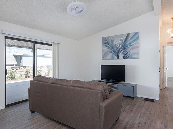 Here I am! Waiting just for you! Here's an opportunity to live in one of the most vibrant 55+ guard gated communities in the desert. This refurbished home offers a perfect blend of comfort, convenience, community living. Two bedrooms/two baths this generous1440 sq ft of well-maintained living area you won't feel lacking for space as the main living room has a wall of windows providing plenty of natural light and views of our stunning southern mountains. The generous living room w/high ceilings combined w/dining room for ease of entertaining & this home also features a cozy sitting room that can be used as a den, TV room, reading area for those times you want to be off by yourself. Freshly painted throughout, newly installed vinyl flooring throughout makes for easy maintenance that seems to expand this generous living space. Refreshed kitchen w/new quartz counter top, stove, sink, dishwasher, refrigerator. Baths have new vanities, primary bath has beautiful double vanity, fixtures, toilets etc. Ceiling lights w/built-in remote-controlled fans in both bedrooms. Need more storage room? The laundry room is just the ticket with 11 cabinets AND new Maytag washer/dryer. For safety a Ring Camera and flood lights and a keyless entry at the front door will give you comfort. Palm Desert Greens amenities are too numerous to mention in the small space but golf included in your HOA fee is without the doubt the most popular. Call Jane, I will be proud to show you this wonderful home