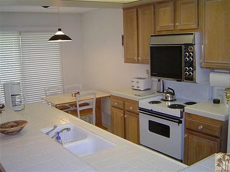Comfortable two-bedroom, two-bath detached condo on a corner lot, with pool nearby. Living room has cathedral ceilings & a cozy fireplace; it overlooks the covered back patio and a green space. Kitchen has a breakfast nook. A separate dining area off the living room seats six. The master suite includes a king bed, walk-in closet and large soaking tub/shower. Guest suite has king bed and shower/tub. Attached two-car garage.