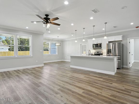 This Corner Lot New Construction is Located in an X Flood Zone. It Has 4 Bedrooms, 2 Baths & A Spacious Open Floor Plan! Plenty of Parking in Your Side Garage w/ A Convenient Second Golf Cart Garage Entrance. Complete w/ An Interior Laundry, Split Bedroom Floorplan, 4th Bedroom or Home Office, Covered Front & Back Porch, Tankless Hot Water Heater, Custom Wood Closets, Crown Moulding Throughout & Stainless Steel Appliance Package. Single Level Home w/ 9' High Ceilings, Located in a Golf Cart Friendly Community. Diamondhead Amenities Include: 2 Golf Courses, Swimming Pools, Tennis Courts, Walking Trails, Community Center, Pavilion, Country Clubhouse, Restaurants, Kayak Launch & More. Don't Miss Out!!! New Construction Home Listed by the Same Owner is located next door:7312 Alu Court (MLS #4068601).