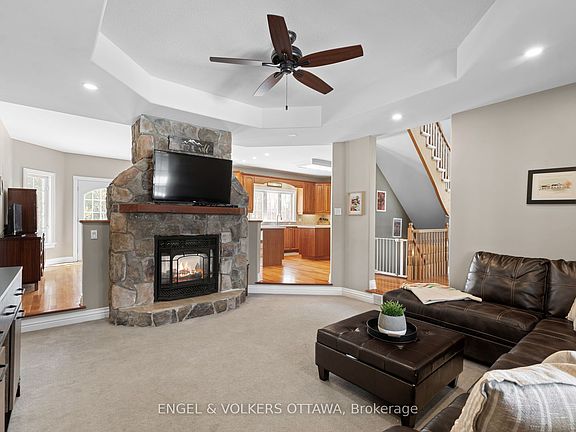 Welcome to this exceptional family estate, set on just over 6 picturesque acres complete with mature trees, a private pond, and a tranquil creek running through your backyard. Thoughtfully designed with a traditional layout, this home is perfect for a growing family - offering a seamless flow from the sunlit foyer to the inviting family room with a double-sided fireplace, and into the spacious eat-in area and beautifully appointed kitchen. You will love cooking with the functional layout, abundance of cabinetry, stainless steel appliances, and bright windows overlooking the private backyard. The open-concept formal living and dining rooms provide the perfect backdrop for hosting memorable holiday gatherings. With 4+1 generously sized bedrooms and 4 full bathrooms, the home includes a luxurious primary suite featuring cathedral ceilings, a spa-like ensuite, and a walk-in closet. The fully finished basement offers a flexible office nook, a cozy movie room, a bonus bedroom or office, a full bath, and all the storage you could need, plus convenient separate access to the garage. A favourite feature is the functional mudroom with double closets, an additional full bath, bonus pantry space, and main floor laundry. Above the attached 5-car garage, a separate entrance leads to a finished loft space with endless potential - ideal for a home office, studio, guest suite or home business. A detached workshop completes this remarkable property, ready to accommodate your lifestyle and hobbies.