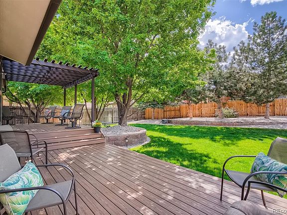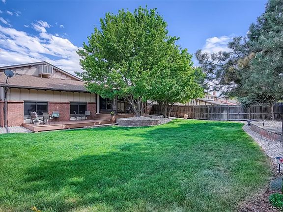 Open House Sun. 5/22, 12-2. Impeccably maintained and updated Arvada brick beauty in a tranquil neighborhood on a gorgeous lot just a stone's throw from Faversham Park! This home has one of the largest floorplans in the neighborhood and includes a beautiful primary bedroom suite with en suite bath and walk-in-closet plus 2 additional bedrooms with shared bath on the upper level. The remodeled eat-in kitchen has quartz countertops, soft-close cabinetry with pull out shelves, a smooth-top electric convection oven and new over-the-range microwave. Convenient access off the kitchen to an expansive, beautifully landscaped and fenced back yard with an extra-large new deck for entertaining. Custom upgrades throughout include an Anderson window package, upgraded patio door, top-down/bottom-up cellular shades, elegant custom stair rails and more. Spacious yet cozy lower-level family room boasts a gas-fireplace and bar area with drink refrigerator. A 4th bedroom, 3/4 bath and convenient laundry room round out this level, plus a huge basement bonus room offers ample room for play, band practice, a yoga studio, storage and more! Attached 2-car garage, great schools and proximity to the park and playground around the corner and to both I-70 and I-76 make this an amazing place to call home. Washer/dryer are included. Home has both AC and an evaporative cooler.