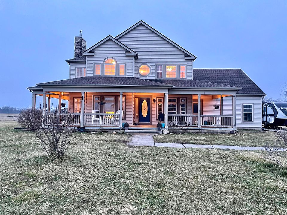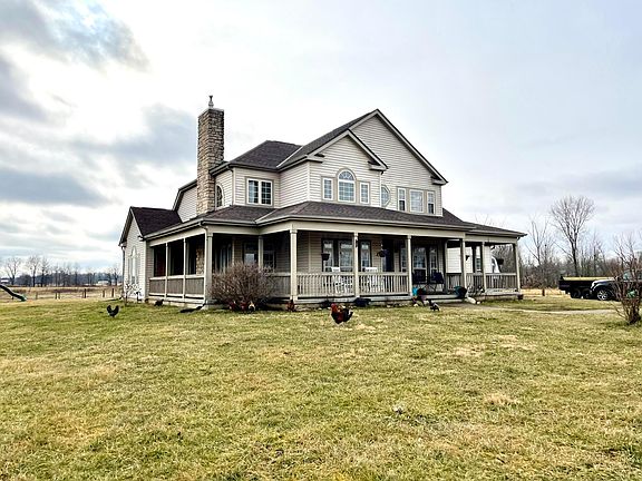 Don't miss out on this newly updated, custom built home w/ approx. 370' of road frontage! The home features a covered, concrete wrap-around porch; a wood pellet stove insert w/ floor to ceiling stone facade in the 2-story great rm; an abundance of natural light; and a partial unfinished basement w/ poured concrete walls. There have been many updates throughout including: refinished white oak wood flrs, paint in all rms, shiplap in dining rm, new interior doors & trim, updated laundry rm, new dishwasher & sink w/ disposal, new insulated garage door & 30amp RV/generator hookup. The 5.44 acre property is waiting to fulfill your homesteading dream w/ over 3 ac of partially fenced pasture/hayfield, three stall horse barn w/ tack rm, a new fenced in garden, and plenty of space for an orchard!