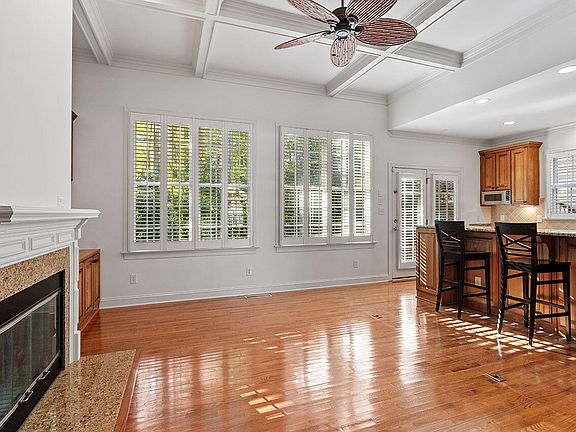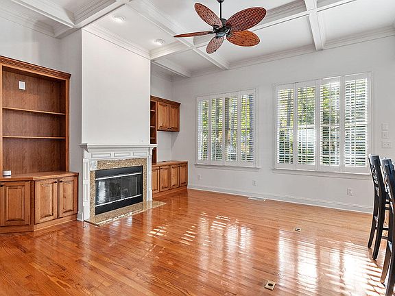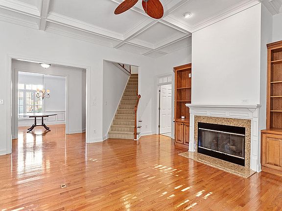 Open, sun-lit end unit in lovely Westlake Reserve, a wonderful neighborhood located in north Raleigh - minutes from 540 and a short walk to Lake Lynn. Spacious living room with a coffered, 11' ceiling and gas fireplace. Kitchen features include oversized island, upgraded cabinets, and built-in wine storage. Interior finishes include hardwood floors, gorgeous crown molding, plantation shutters and freshly painted throughout. First floor primary suite features tray ceiling, 2 walk-in closets, double vanity and tiled shower. The second floor has 2 bedrooms, spacious bonus room, and a built-in office in the loft. So much storage - walk-in closets in all bedrooms, accessible walk-in storage on second floor and attic. Enjoy the privacy of a beautifully landscaped backyard from the freshly painted deck or on the patio.