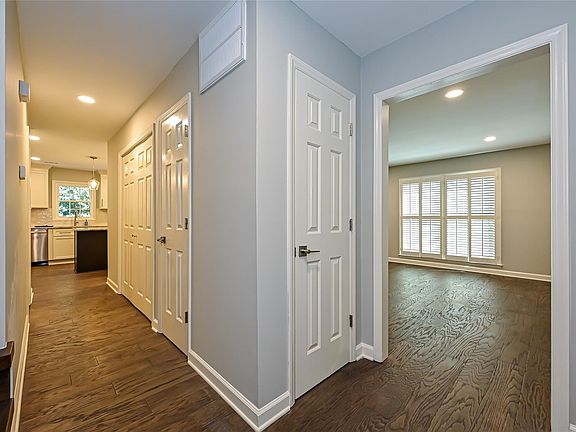 This is one of the finest condos in Quail Hollow Estates. Enjoy ease of living in this spacious and functional floor plan with formal and informal living space with beautiful updates. Wood flooring throughout on main and upper level. The large and bright living room features a wood burning fireplace, double windows with plantation shutters and a custom built-in. Fireplace sold "as is", with no known issues. The dining room provides access to a brick paver patio for ease of entertaining. The dining room and kitchen create a wonderful open space to make room for a work island. New cabinetry, pendant lighting, SS appliances, sink, faucet and disposal are a few of the amenities. The primary bedroom with custom walk-in closet, and updated bath with tile floors, dual sinks and a walk-in tiled shower with seamless glass door. Two additional bedrooms, another updated bath with tile floors, a tub/shower with tile surround, and new vanity.