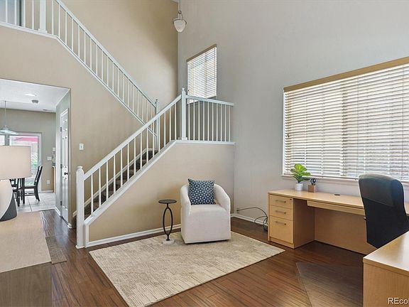 Welcome to this light and bright 2-story home located in the highly desirable Creekview at River Run II neighborhood, within the top-rated Cherry Creek School District. Offering 3 spacious bedrooms and 3 bathrooms, this home is designed for comfort and convenience. Step inside to an inviting open floorplan with vaulted ceilings and beautiful bamboo wood floors. The well-appointed kitchen features 42” wood cabinets, granite countertops, tile floors, a custom backsplash, a pantry and stainless steel appliances. Sliding glass doors with built-in blinds in the kitchen lead to a professionally landscaped and fenced backyard. The comfortable family room includes a gas log fireplace and built-in shelves. The large primary suite provides mountain views, a walk-in closet and an ensuite bath with double sinks for added luxury. The two additional bedrooms feature new barn doors on the closets, one being a walk-in. The washer & dryer are conveniently located upstairs, near the bedrooms. Recent updates include a new central air conditioning unit in 2024, a new water heater in 2023 and updated brushed nickel door hardware. Outside, you'll enjoy a low-maintenance yard with a sprinkler system and a flagstone patio, perfect for outdoor entertaining or relaxing. The durable concrete tile roof adds longevity and peace of mind. The attached and oversized 2-car garage offers additional storage space. Centrally located, this home allows easy access to the Denver Tech Center, the airport and major highways. Plus, it is ideally situated within walking distance to the Cherry Creek Regional Trail System and the local elementary school. Shopping, dining and parks are close by as well.