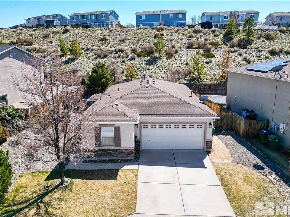 This well maintained home boasts brand new LVP flooring throughout living areas, kitchen, bathrooms, laundry room and in one of the bedrooms. New carpet in other 2 bedrooms. New interior paint, brand new stove, dishwasher and refrigerator. Built-in microwave only a few years old. Enjoy this quiet neighborhood and views of the mountains from your beautifully landscaped backyard!, Right around the corner from Sage Ridge golf course! Close to schools, restaurants, amenities and easy freeway access.