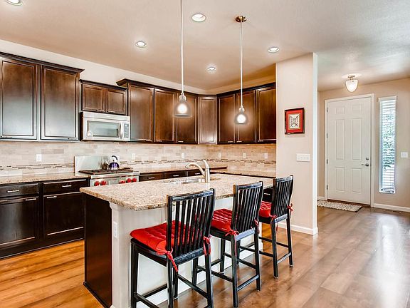 This beautiful 3 bedroom 3 bathroom home has so much to offer! MAIN FLOOR Master with 5 piece master bath, granite counter tops and a huge walk-in closet! Main floor laundry room as well. The kitchen boasts stainless steel appliances, including a high end Wolf gas range. The huge granite island with all of these amenities makes cooking and entertaining in this open floor plan effortless. The loft and bedroom upstairs provide a beautiful view of Downtown Denver. The side yard is low maintenance and the front is maintained by the HOA. Relax on the covered front porch which is directly across from the community park and picnic area...you do not want to miss this! Close to new Westminster retail center and light rail. Easy access to downtown, mountains, shopping and parks! Schedule a private showing today!