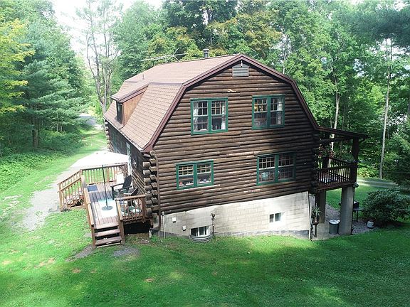 Looking for that quintessential Log Cabin in the woods? Here it is!! This Breath taking Log Home is tucked back on 10 wooded acres and has deer trails throughout! Gorgeous log construction throughout with beautiful full length log ceilings, absolutely stunning!! Each room is wrapped in windows and are filled with natural light! Lovely country kitchen with adjoining dining area. Great room showcases the wood stove, perfect for cold winter nights! In warmer weather, enjoy the sunshine from the side deck or watch the wildlife from the full length covered porch!3 bedrooms upstairs with a large master bedroom. Walk Out Lower level has new in-law apt with kitchenette & full bath!! Many recent updates including new furnace (2021), Hot water tank (2019) Logs cleaned and stained (2020), garage doors, stone tile bathroom floor, entry doors, gutters/facia, some new hardwood flooring & whole house dehumidifier. New 12 x 20 shed. Full list of updates available. Located just minutes from the quaint Village of Naples, two ski resorts, multiple award wining wineries-breweries and distilleries and Canandaigua lake boat launch! Perfect for AirBNB!