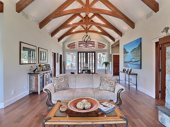 This architectural masterpiece is located in the prestigious neighborhood of Woodland Shores, at Lake Cowichan. This property has a total living area of almost 4500 sqft, including a detached carriage home with 3 car garage. This home’s design was based on world class resort style living in a lake community. The exterior of this elegant home has exquisite local rock arches, columns, Hardie Plank siding, locally milled Cedar shingles, and enormous windows providing 360 degree views of both lake and mountains. Incredible fir Timber trusses flow through the home from the porte-cochere to the outdoor kitchen and wrap around deck. This home has uncompromising quality finishes, from the Hickory hardwood floors, to the imported exotic wood doors from Vietnam. In and outdoor living at its finest.