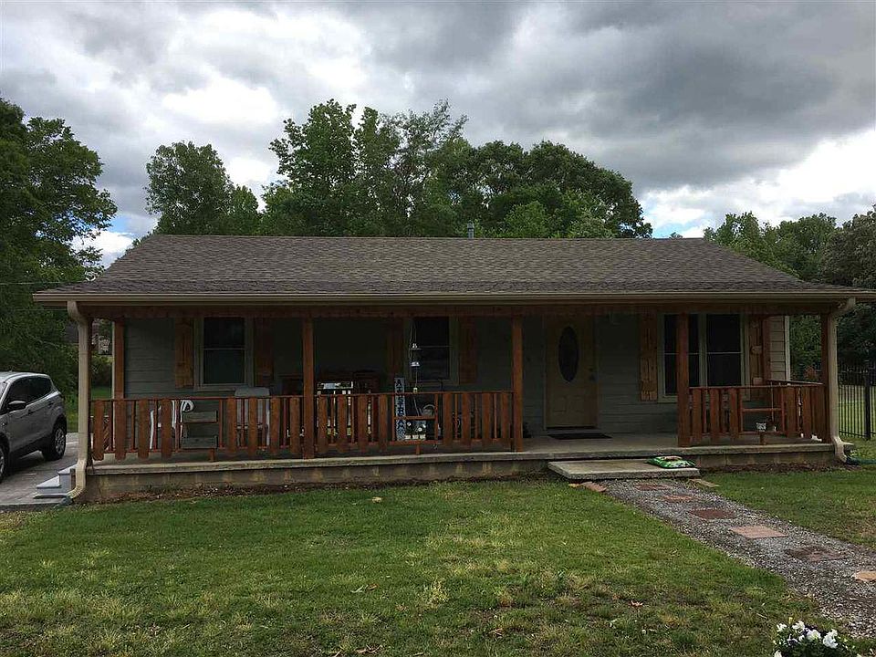 Lovely 3 BR/1 BA on 1 acre lot! Large covered front porch ~ New floors ~ Updated kitchen & bathroom!