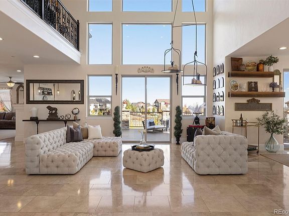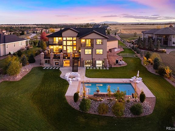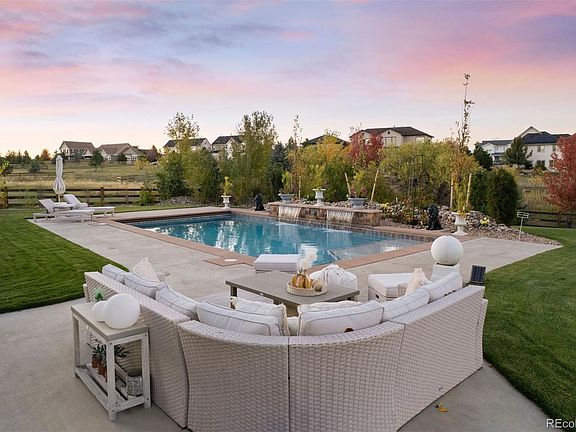 Refined yet relaxed, this Castlewood Ranch home lives like a private resort, highlighted by a shimmering heated saltwater pool with waterfalls and sun shelf, backed by beautiful open space, and set on a quiet cul-de-sac. Mature landscaping and distant mountain views enhance the sense of privacy and calm. A fully enclosed all-seasons sunroom with a state-of-the-art kitchen, hot tub, heated floors, see-through fireplace, and folding glass doors opens to the pool deck, creating the ultimate backdrop for gatherings.