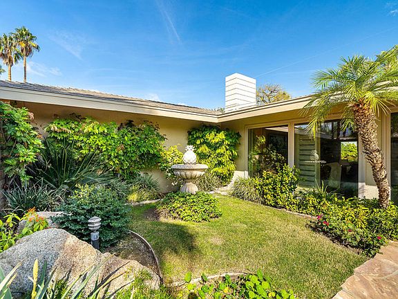 Discover timeless desert charm in this classic 1958 ranch house at 73430 Buckboard Trail, nestled in the historic Silver Spur Ranch neighborhood of South Palm Desert. A circular driveway surrounded by palm trees welcomes you into this inviting property. Step through the foyer into a spacious home with 2 notable fireplaces. The great room features a cozy fireplace, floor-to-ceiling windows, and wood shutters that add a touch of warmth and character. The open floor plan flows seamlessly into the kitchen, complete with a bar/island- perfect for a quick cup of coffee or casual dining. Adjacent to the kitchen is a dining area for entertaining, a comfortable living room incorporating the second fireplace, and a versatile den/bedroom with an en-suite bath. To the right of the entrance, the guest and primary bedrooms are thoughtfully positioned for added privacy from the main living spaces. The north facing pool area is comprised of desert mountain vistas optimal for relaxing while enjoying sunsets. Excellent proximity to El Paseo, hiking trails and the Living Desert. Brimming with potential, this hidden gem offers the ideal opportunity for a relaxing weekend escape or a year-round retreat.